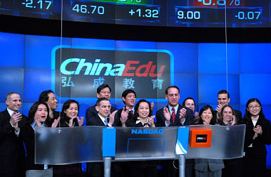 美国当地时间2007年12月11日10时,国内最大的网络教育服务机构弘成教育在美国纳斯达克交易市场完成挂牌上市,上市代码为“CEDU”,在美发行682万股美国存托股票(ADS )。